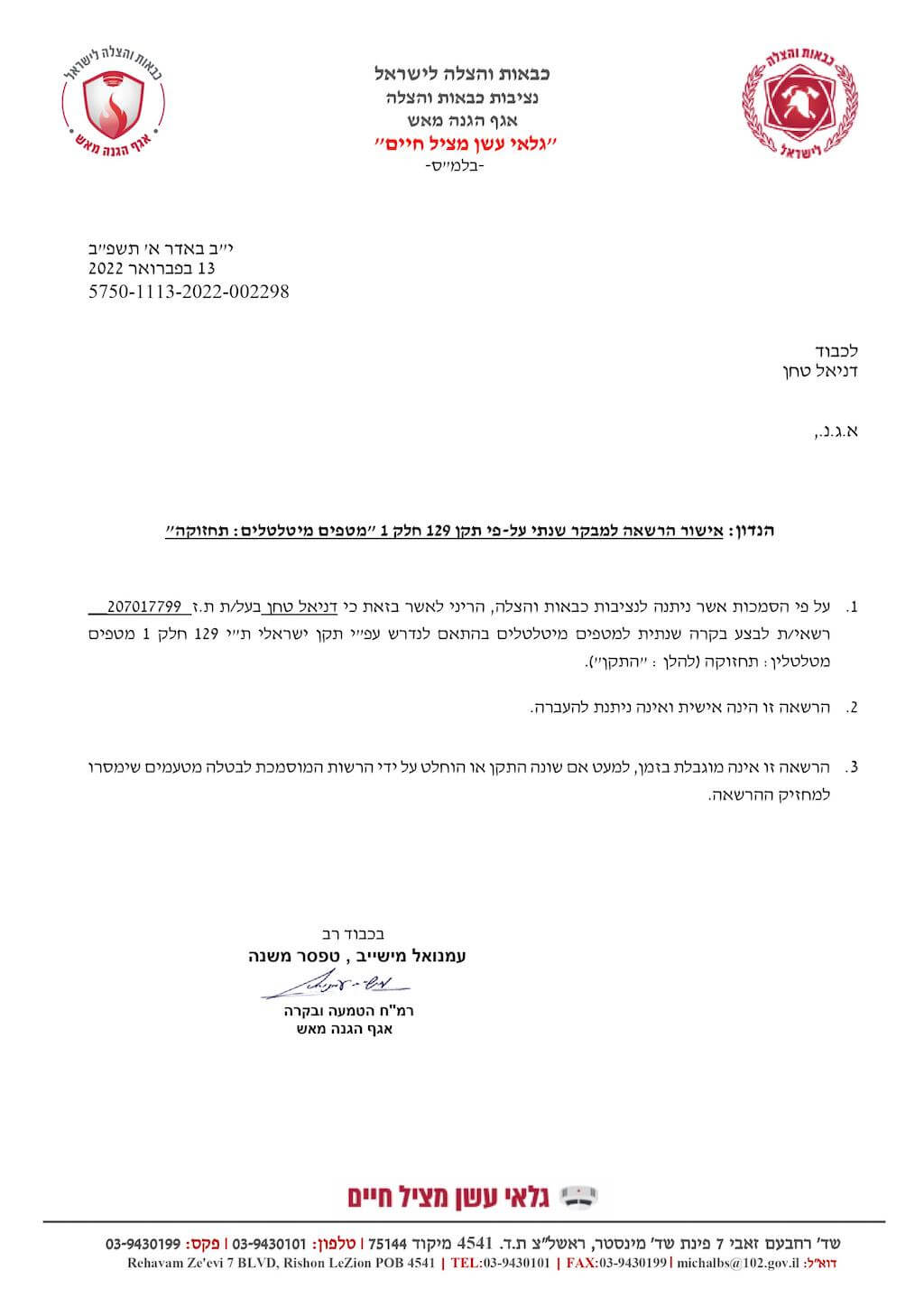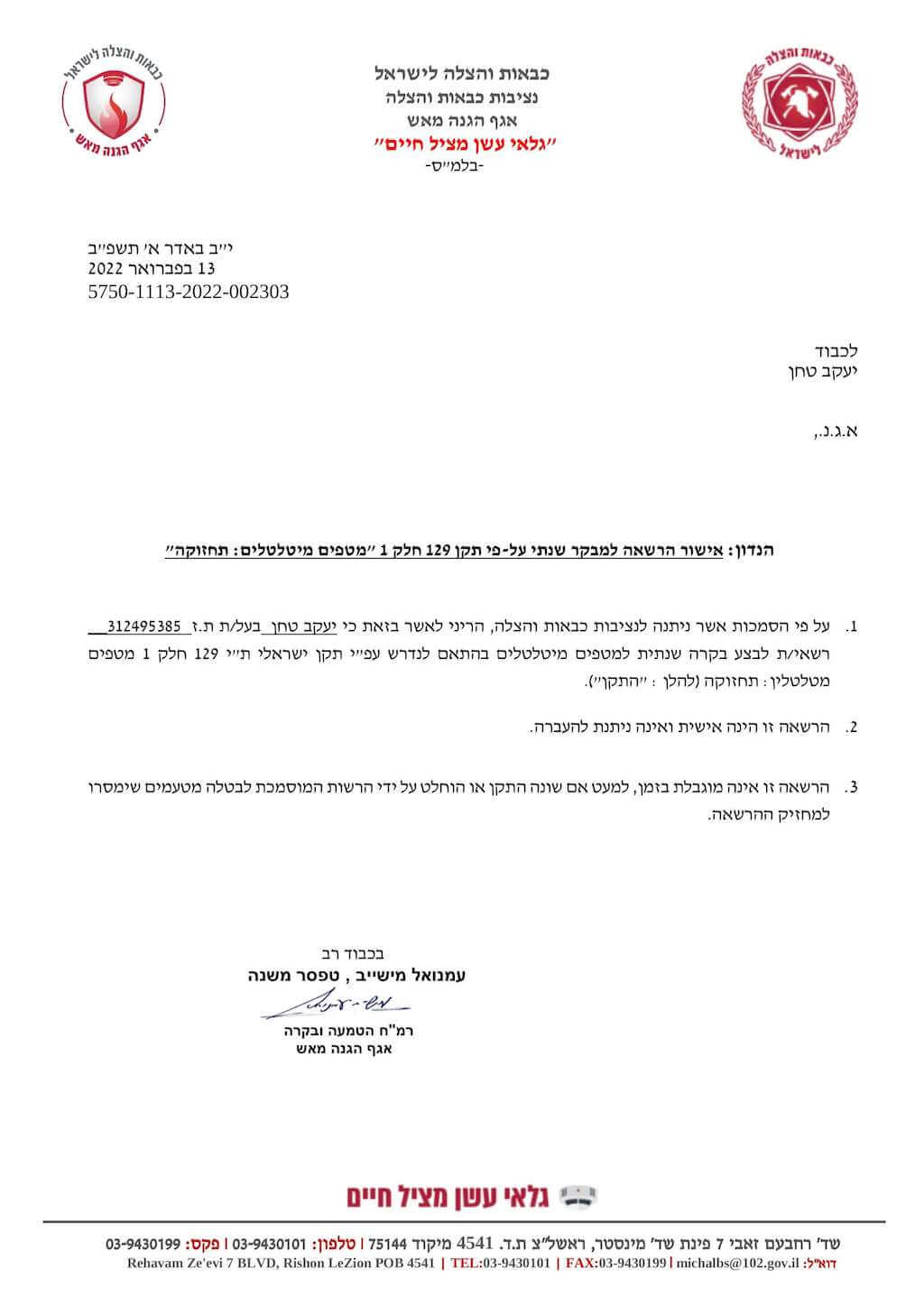 התקשר 03-940-7033ליווי הלקוח מול שירותי הכבאות בהתאם להוראות נציב הרשות הארצית לכבאות והצלה לעניין סידורי בטיחות אש במבנים ועסקים עד לקבלת האישור הסופי לכיבוי עבור בית העסק.