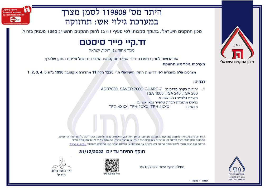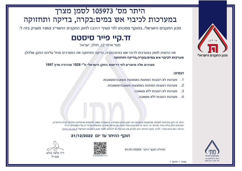 אצלנו אין פשרות. אנו עומדים בתקנים המחמירים בתעשייה בהתאם לנציבות כבאות האש ומכון התקנים הישראלי.